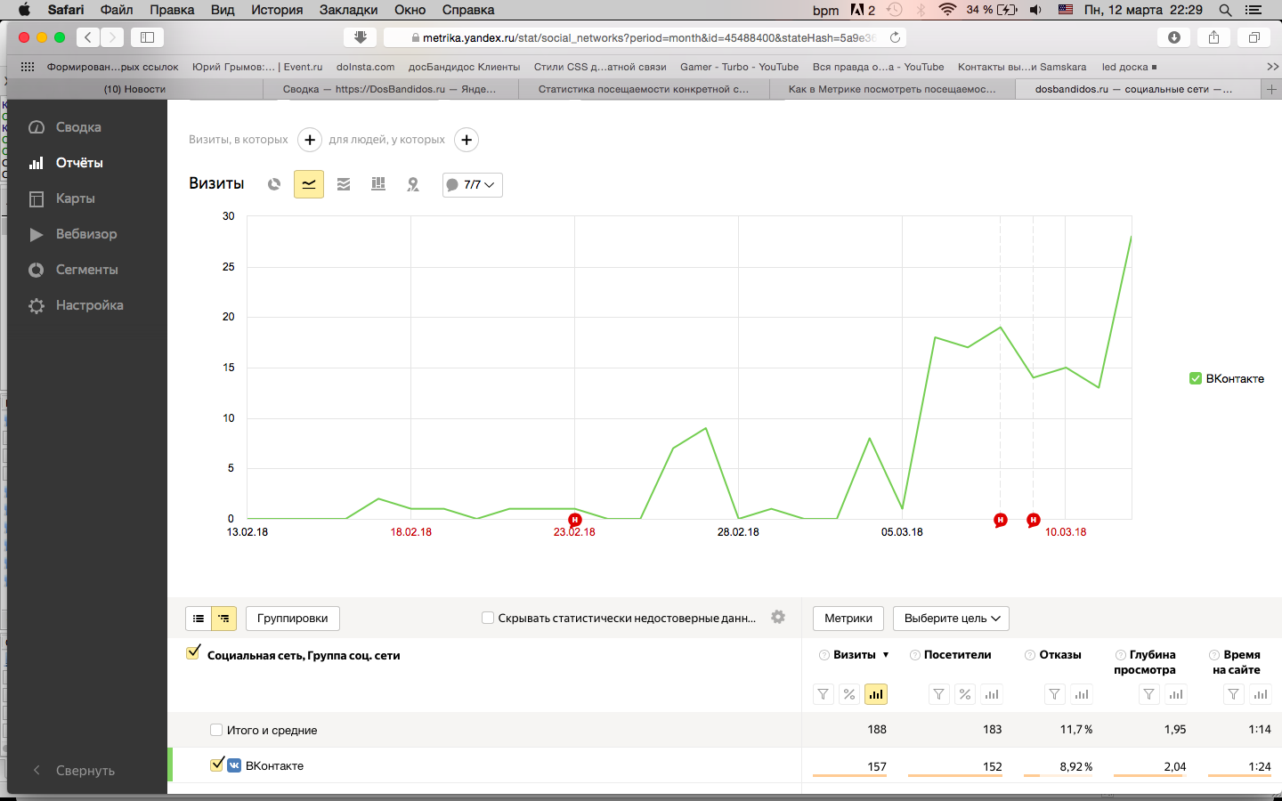 Увеличение переходов на сайт из социальной сети "ВКонтакте". Результат рекламы и интересного ведения группы.